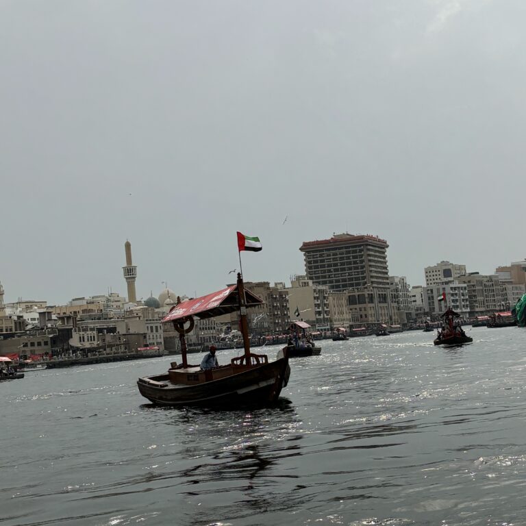 Dubai Creek to historyczna rzeka, przy której powstała pierwsza osada. Dziś można przepłynąć się tradycyjną łodzią abra za symboliczne 1 dirham – to jedna z najbardziej klimatycznych atrakcji Starego Dubaju.